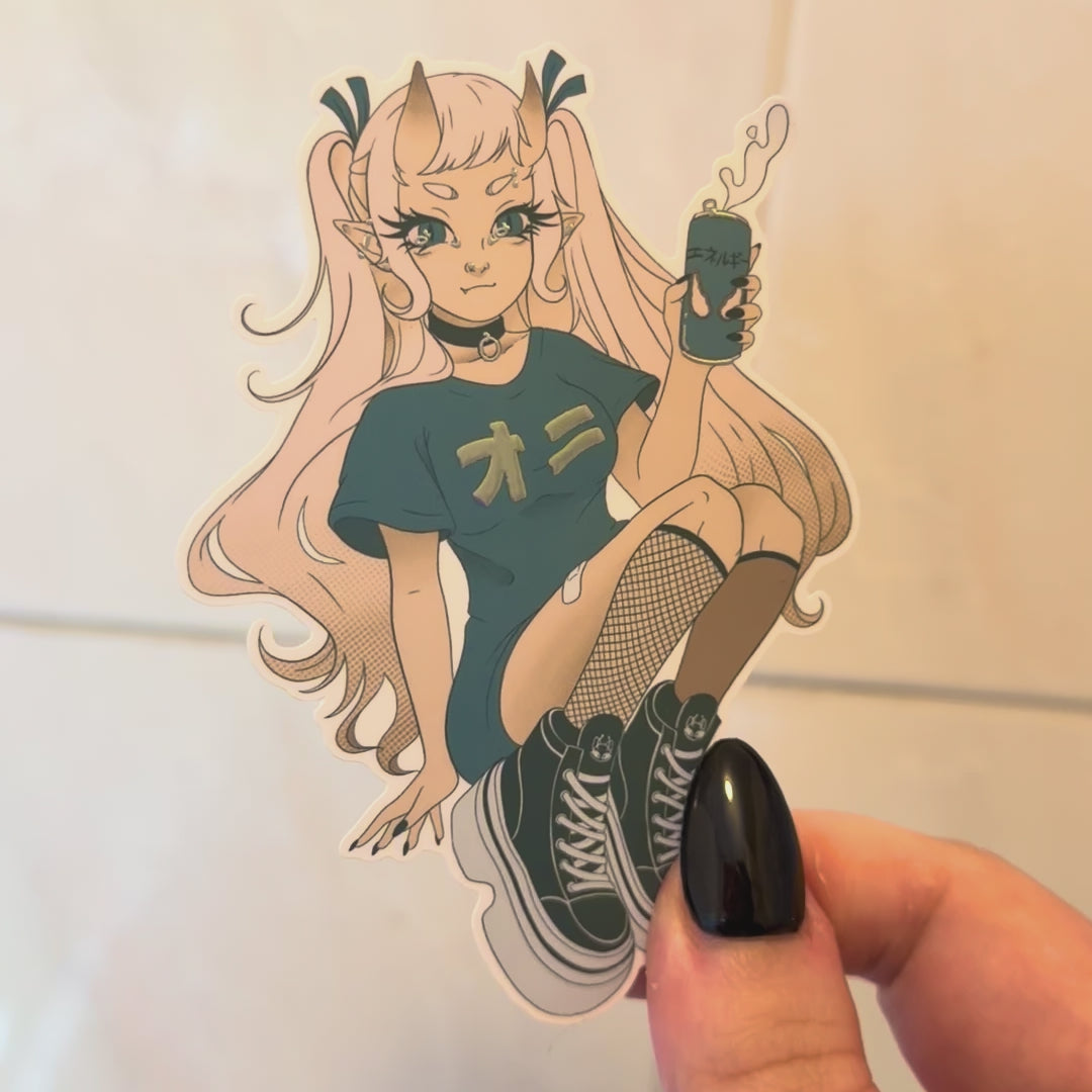 This 4 inch pastel oni girl sticker has a dreamy mix of finishes - soft touch for a smooth feel with holographic accents that catch the light! Perfect for decorating laptops, water bottles, notebooks or…anything else. I don’t judge.